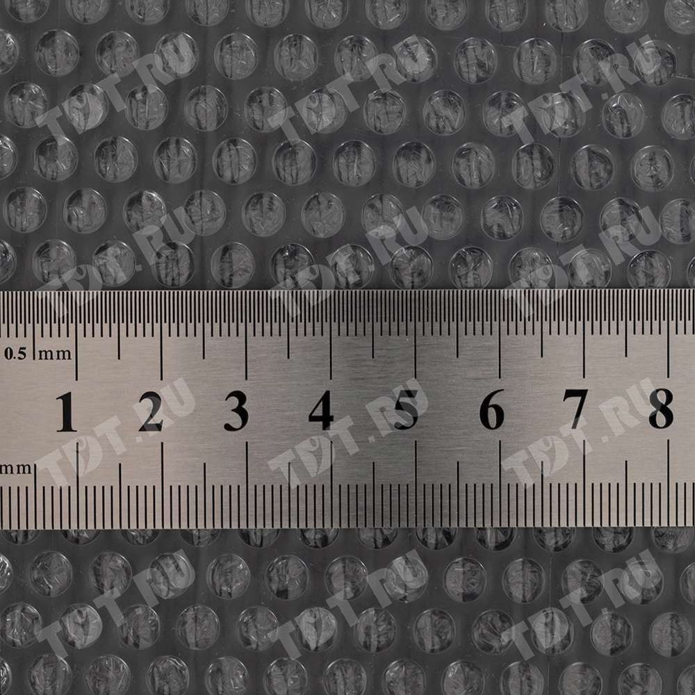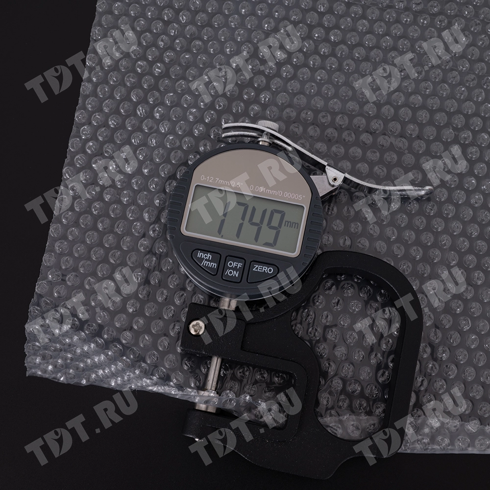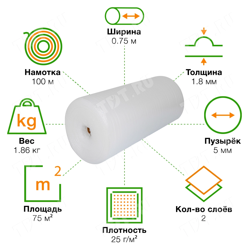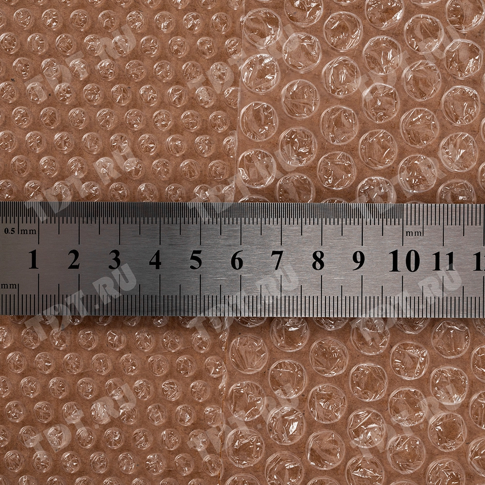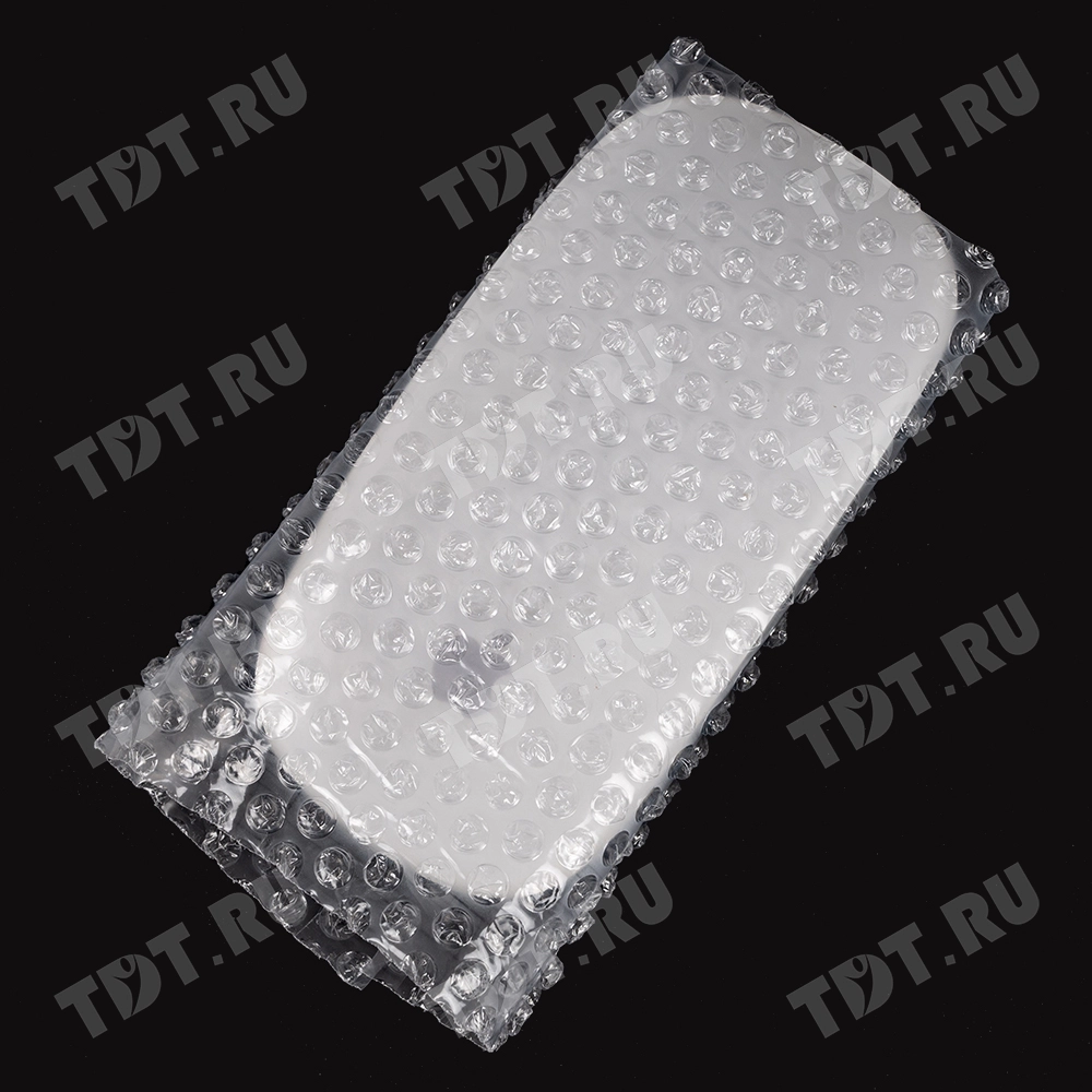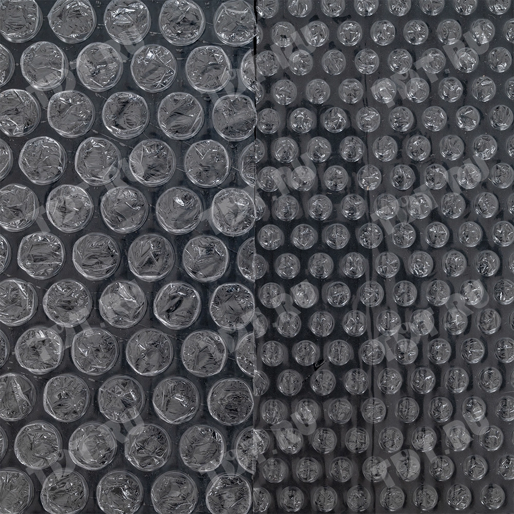 Прозрачная двухслойная воздушно-пузырчатая пленка «МиниБабл», намоткой 100 м, шириной рулона 0.75 м, диаметром пузырька 5 мм, плотностью 25 г/м². Изготовлена из полиэтилена. Производится в России.