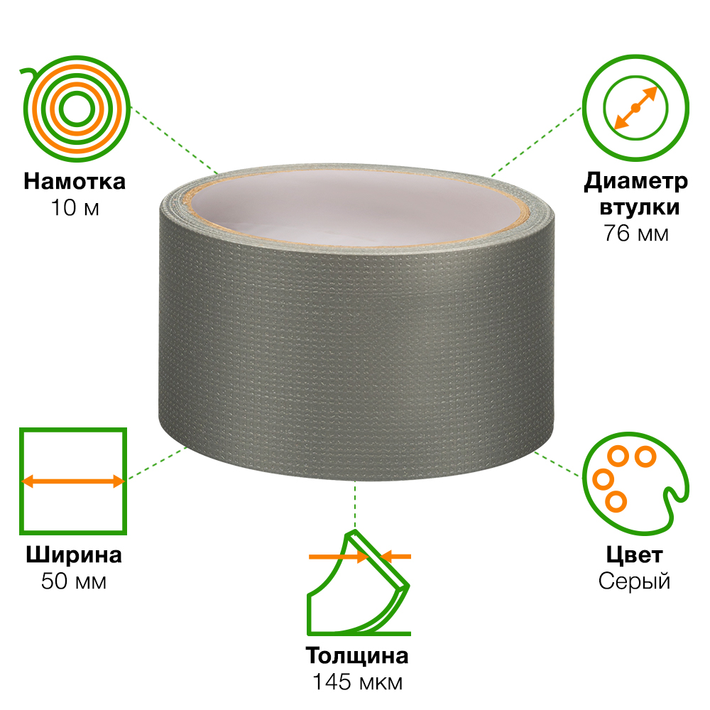 Клейкая лента армированная х/б тканью, серая, 50мм*10м