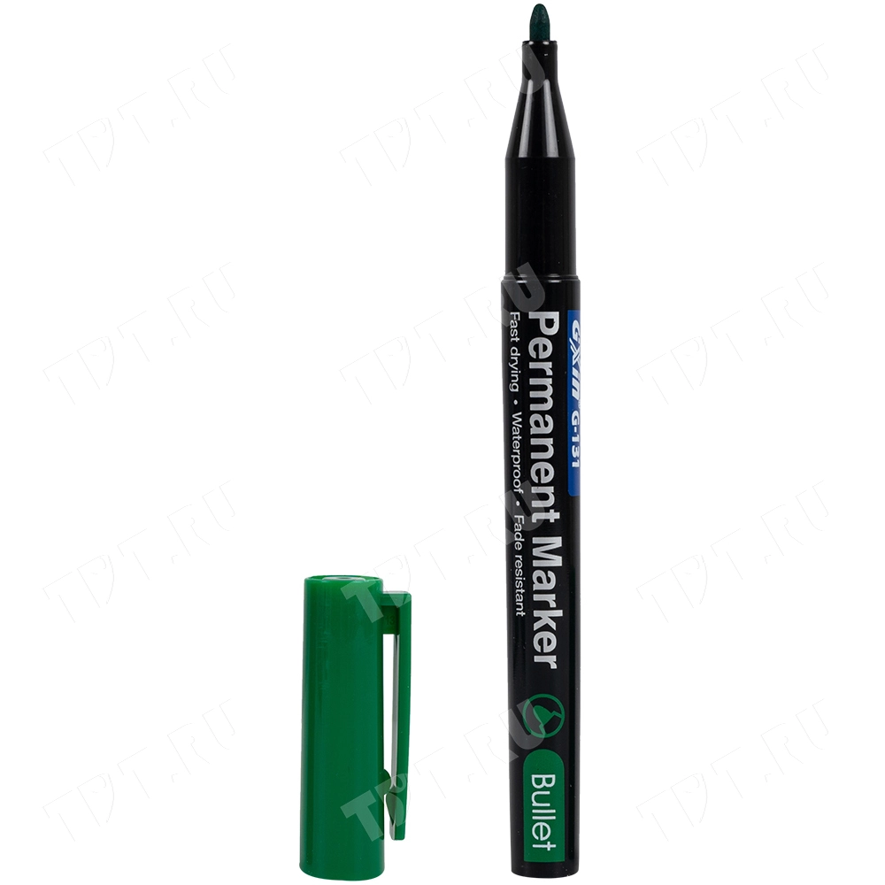 Маркер перманентный Gxin G-131, на спиртовой основе, толщиной пера 1-1.5 мм, зеленого цвета, пулевидный наконечник. Продается поштучно. Производится в Китае.
