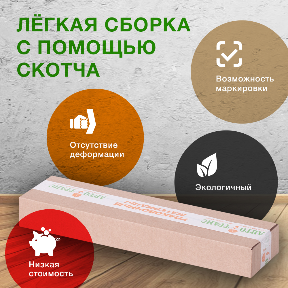 Преимущества:- Легко упаковывается с помощью скотча.