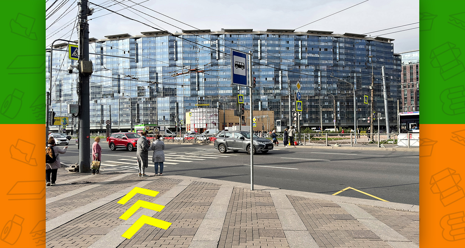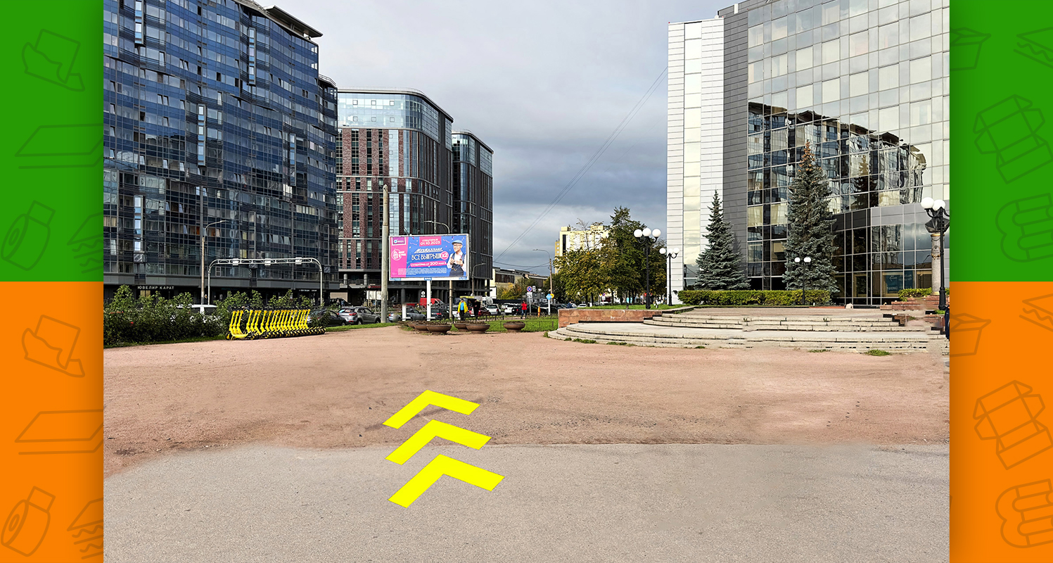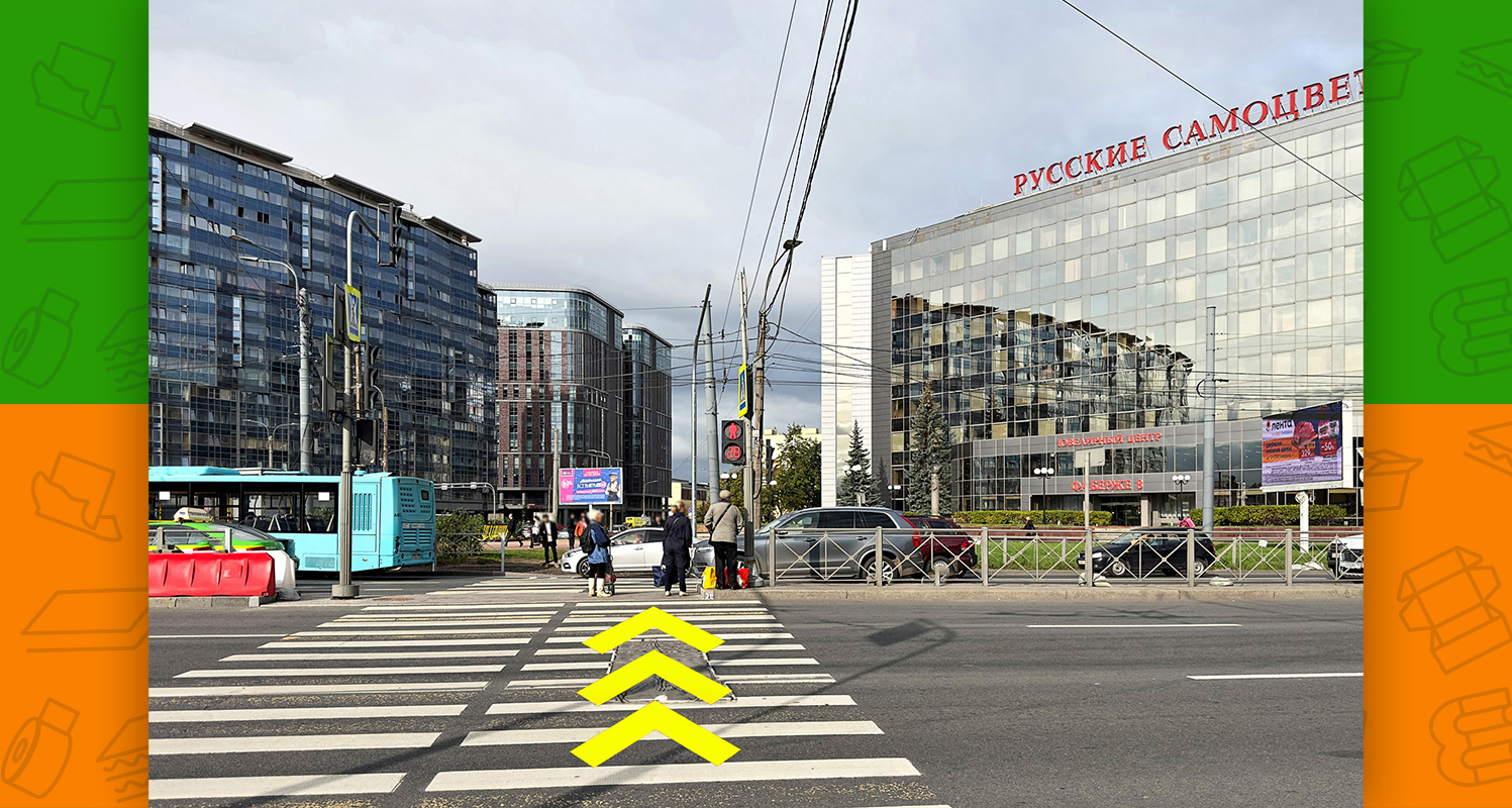 - слева будет пешеходный переход, необходимо по нему перейти через обе стороны Заневского проспекта (после перехода окажетесь на площади Карла Фаберже)