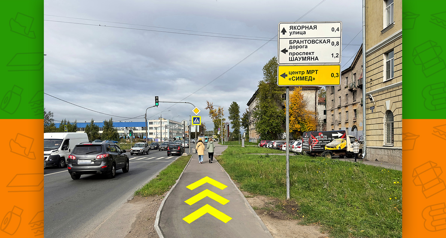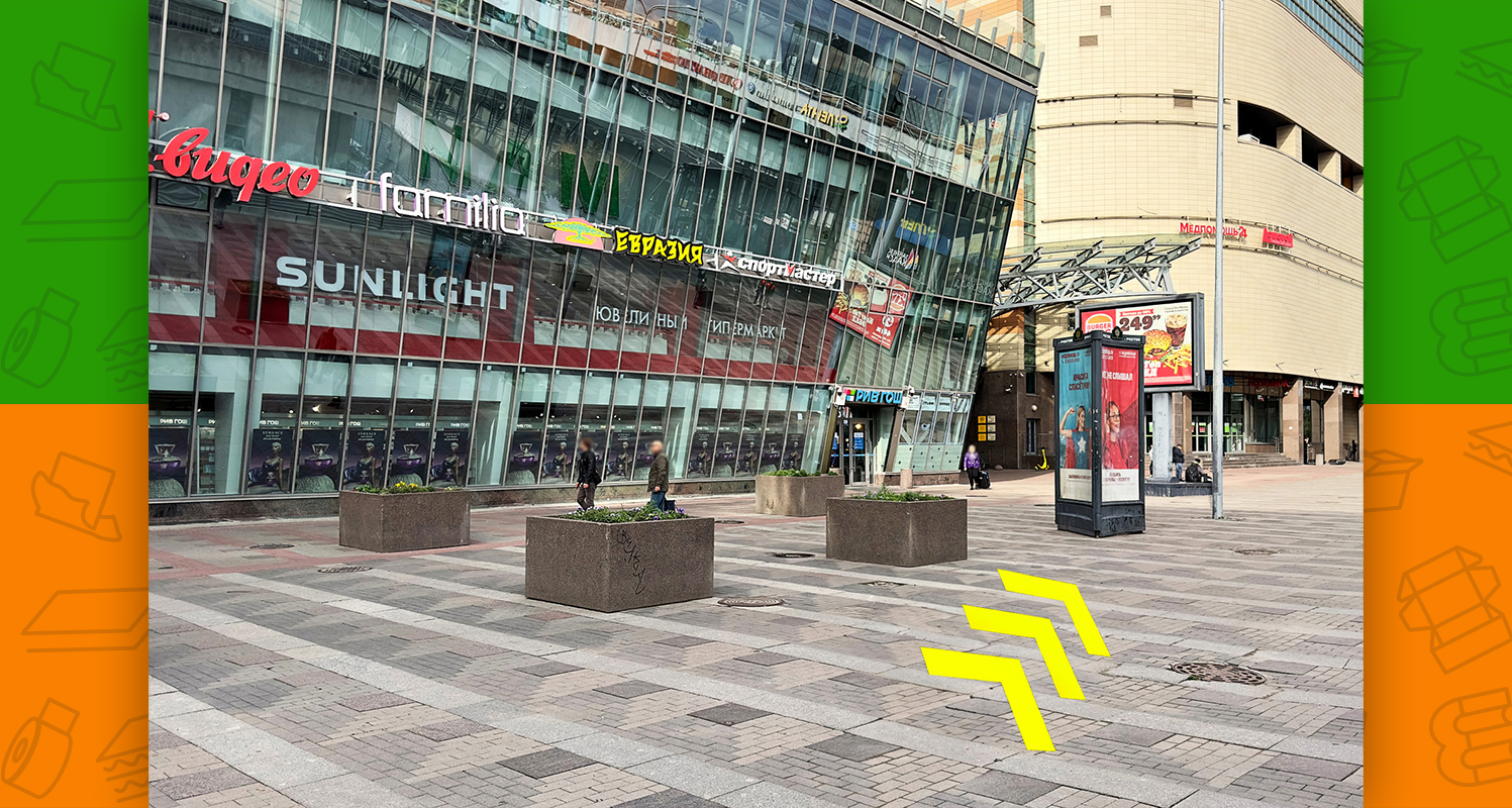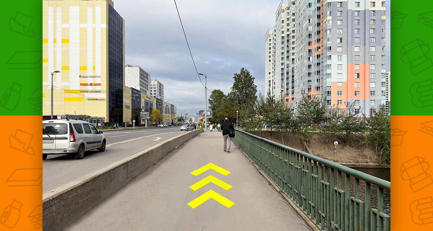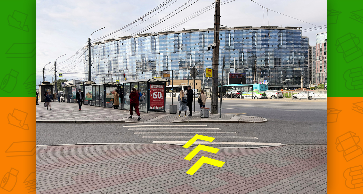 - слева будет пешеходный переход, необходимо по нему перейти через обе стороны Заневского проспекта (после перехода окажетесь на площади Карла Фаберже)