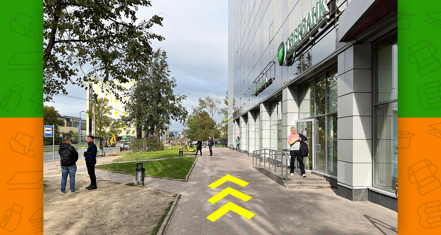 - пройти ещё 25 метров и снова повернуть направо (обогнуть стеклянное здание)