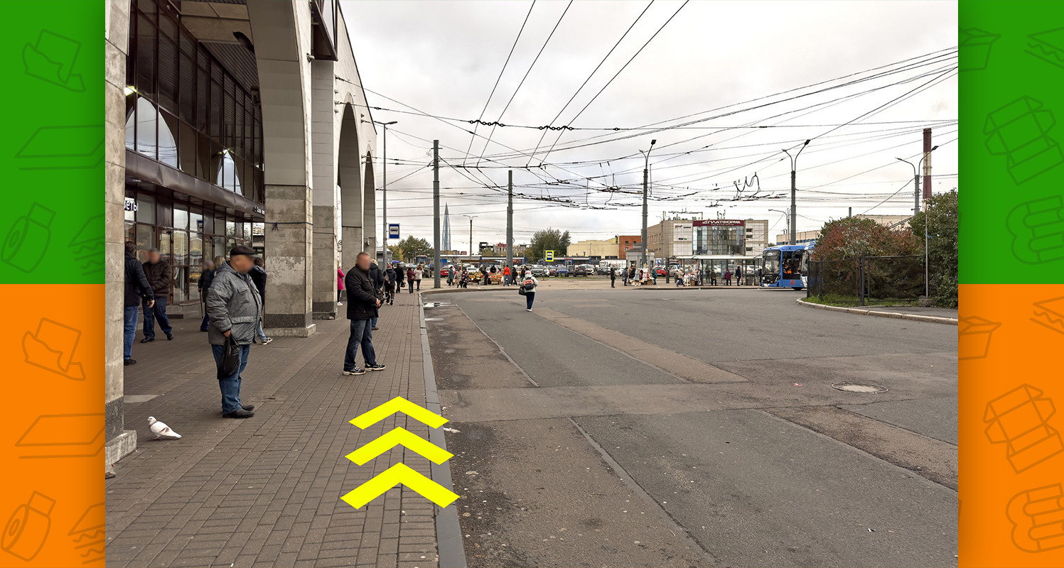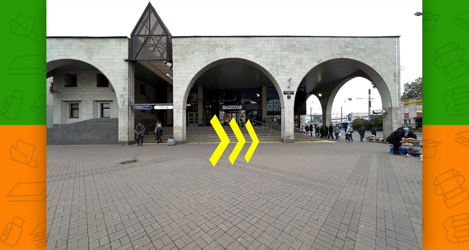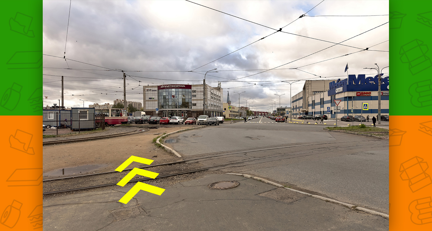 - на выходе из метро повернуть налево и еще раз налево (обойти здание метро), пересечь трамвайные пути в сторону ТЦ «Платформа»