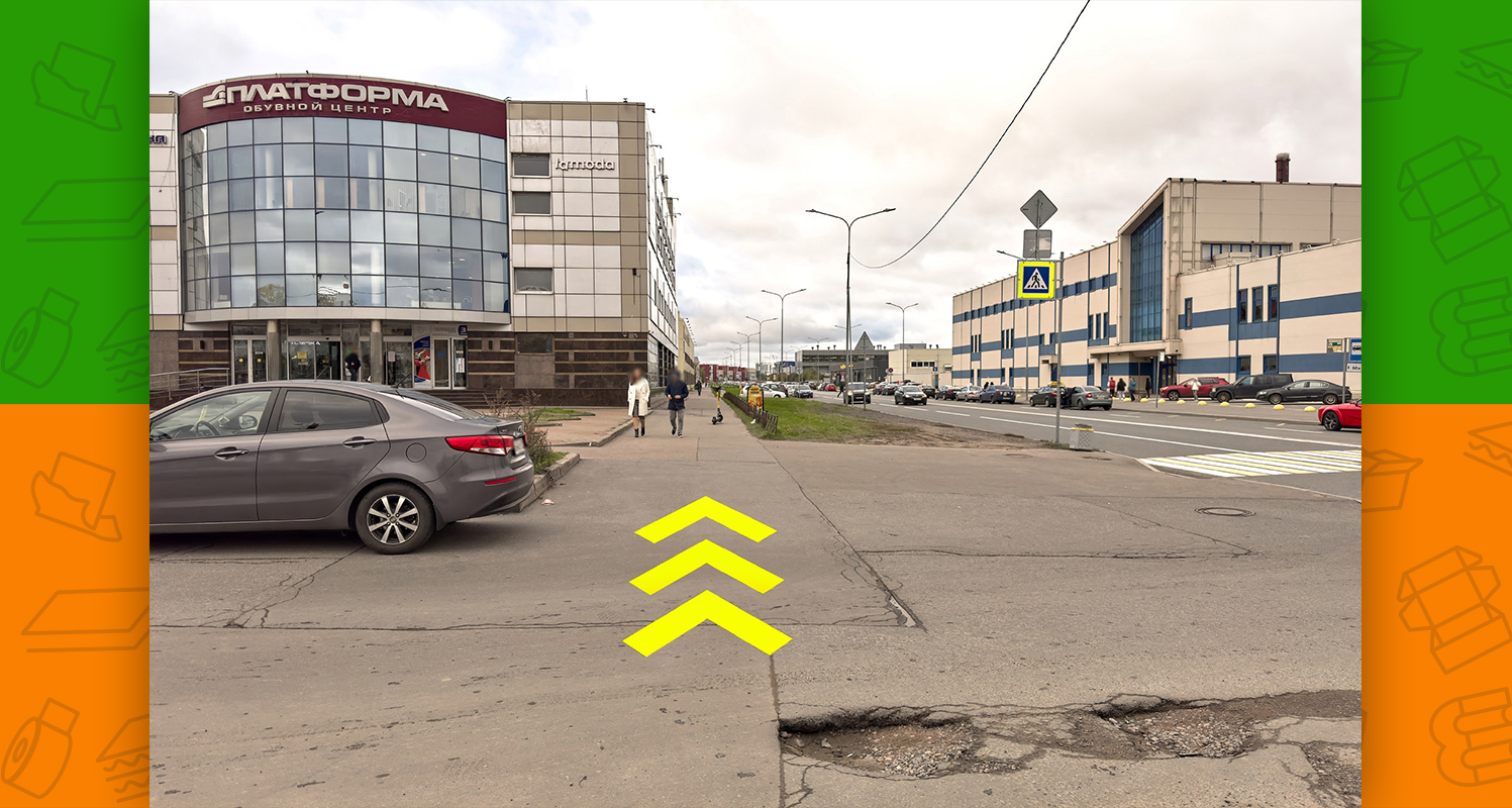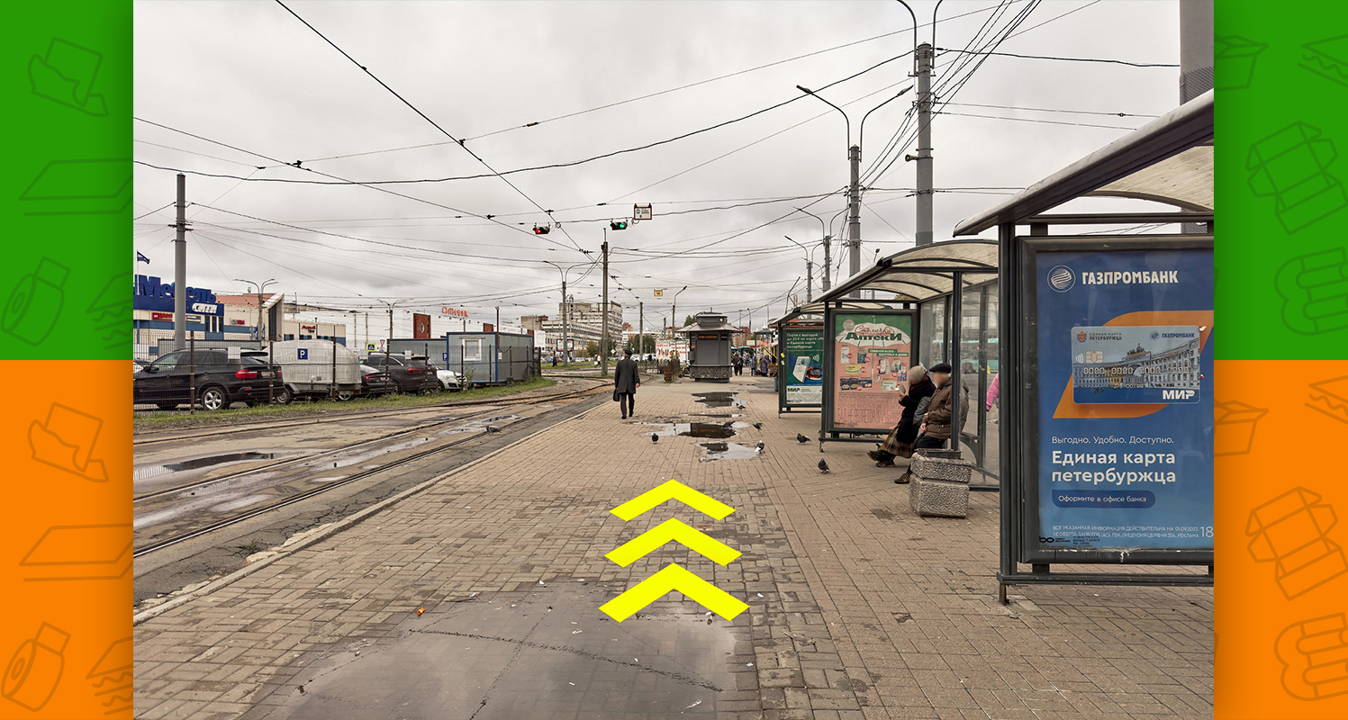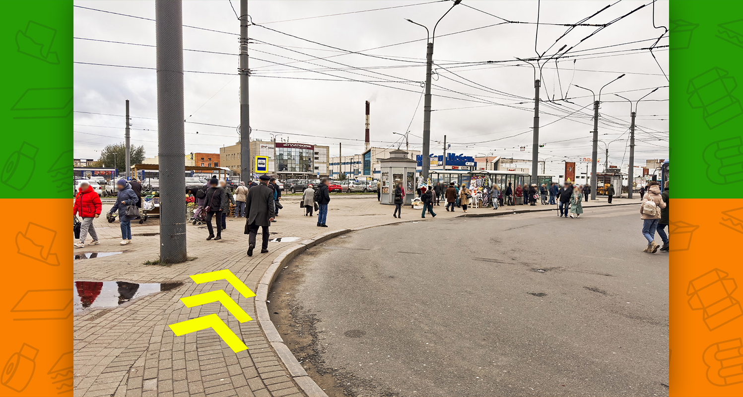 - на выходе из метро повернуть налево и еще раз налево (обойти здание метро), пересечь трамвайные пути в сторону ТЦ «Платформа»