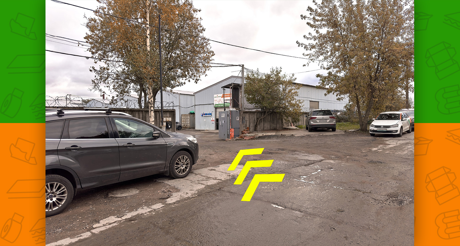 - повернуть налево, пройти приблизительно 50 метров, с правой стороны проходная складского комплекса.
